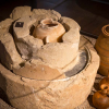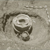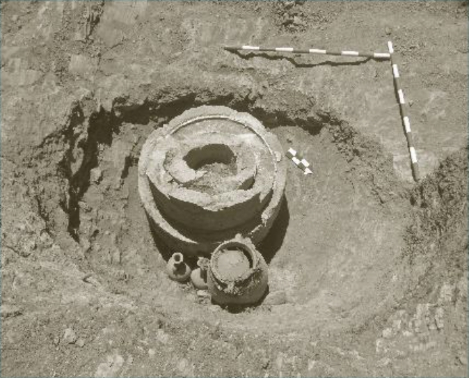 En una de las intervenciones, los investigadores han documentado un nuevo enterramiento con sarcófago circular en piedra caliza (actualmente en el Museo de Málaga, Palacio de la Aduana), datado en el siglo VIII a.C. Este sarcófago contenía una urna cineraria acompañado de una crátera, jarros y otros objetos del ajuar funerario, mostrando la complejidad de los rituales y la riqueza simbólica de la comunidad fenicia asentada en el lugar.