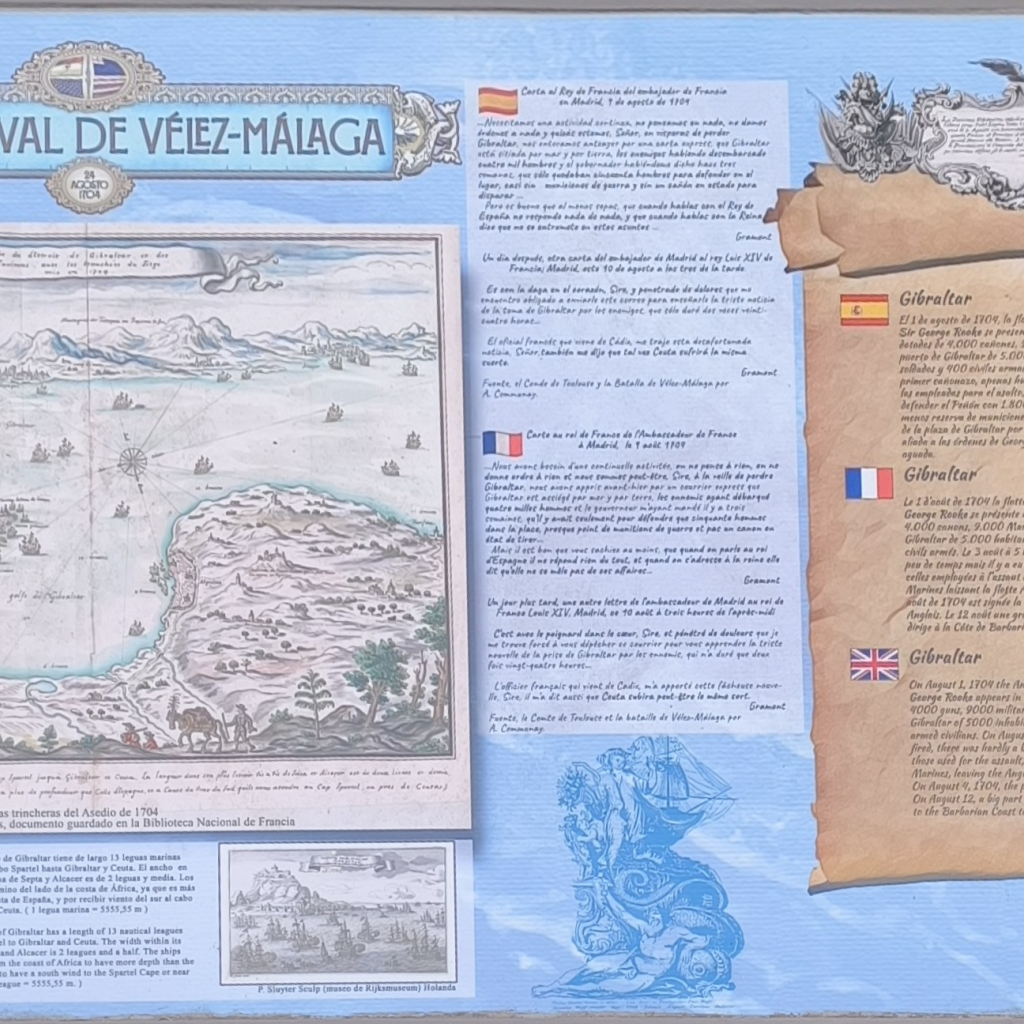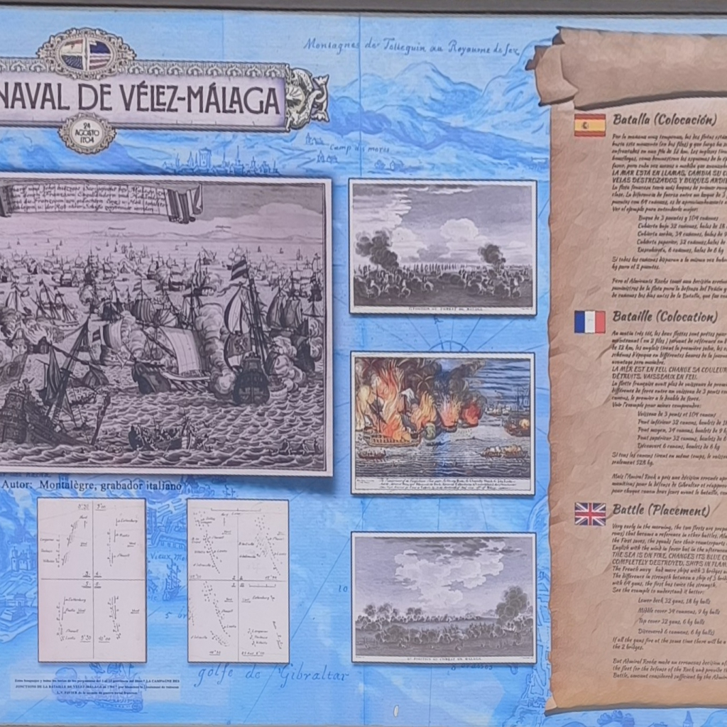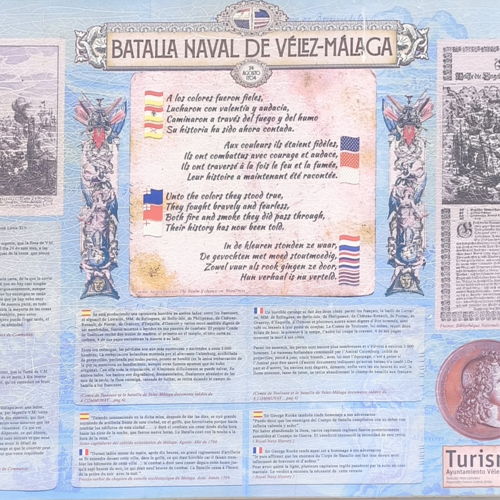 Frente a las costas de Torre del Mar se libró en agosto de 1704 la Batalla Naval de Vélez-Málaga, el mayor combate máritimo de la Guerra de Sucesión Española, donde se enfrentaron las armadas de España, Francia, Inglaterra y Holanda. Este hito histórico que marcó el inicio de la leyenda del Almirante Blas de Lezo , es el eje central de una nueva exposición permanente compuesta por 15 paneles explicativos. Con esta muestra al aire libre, sumada a la escultura, Vélez-Málaga se consolidad como un referente internacional en la divulgación de la historia naval.