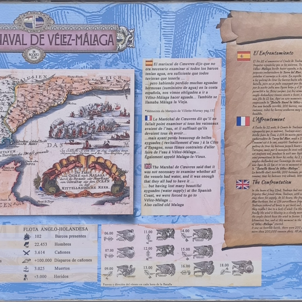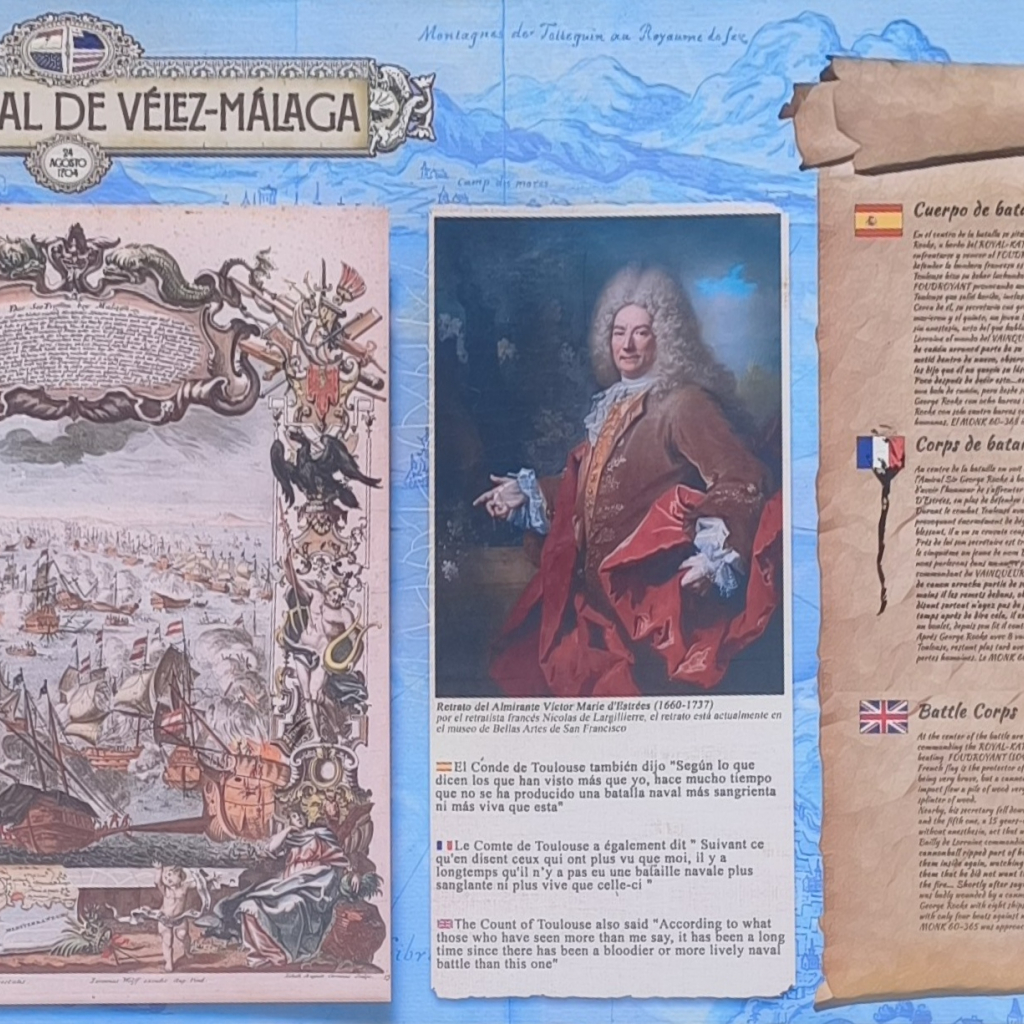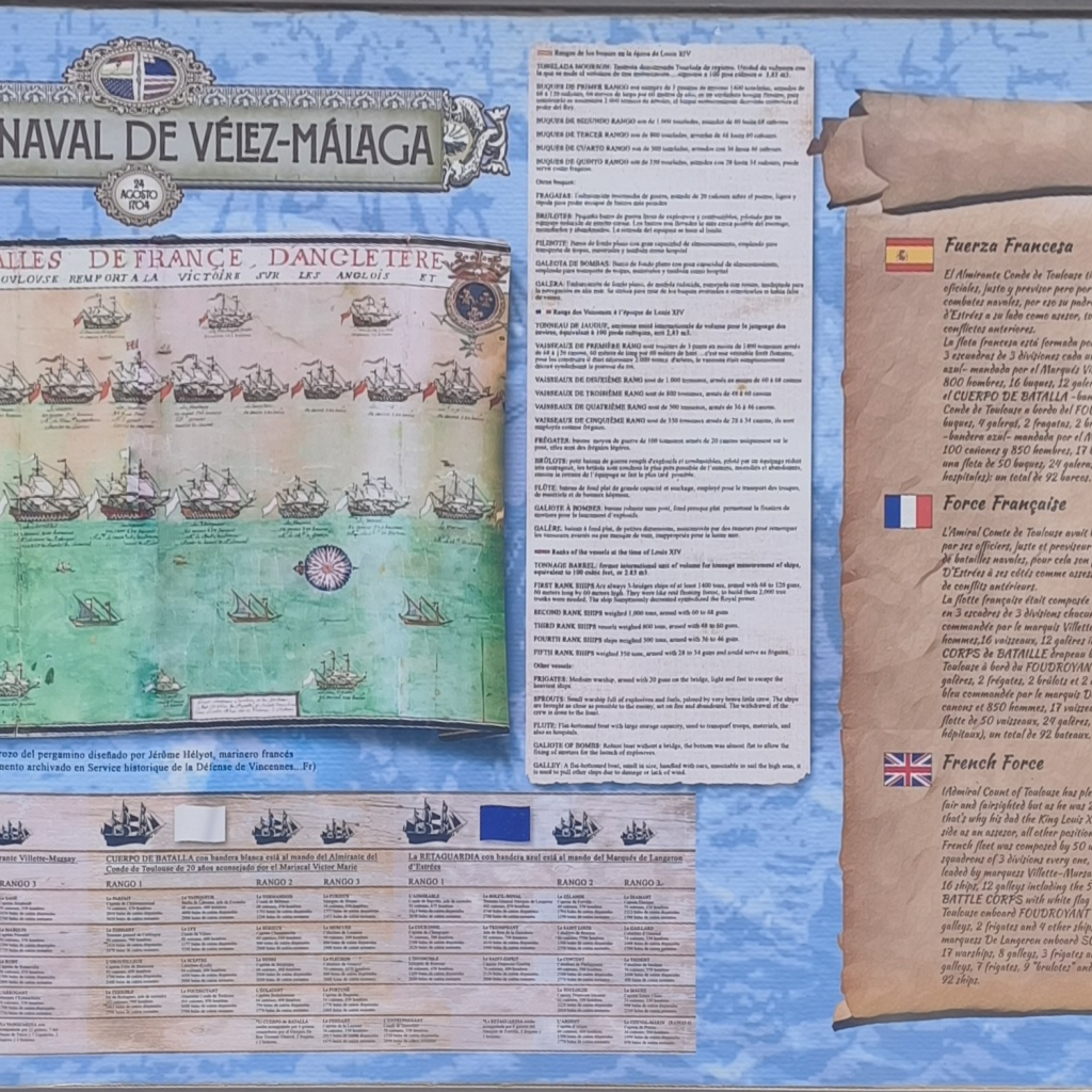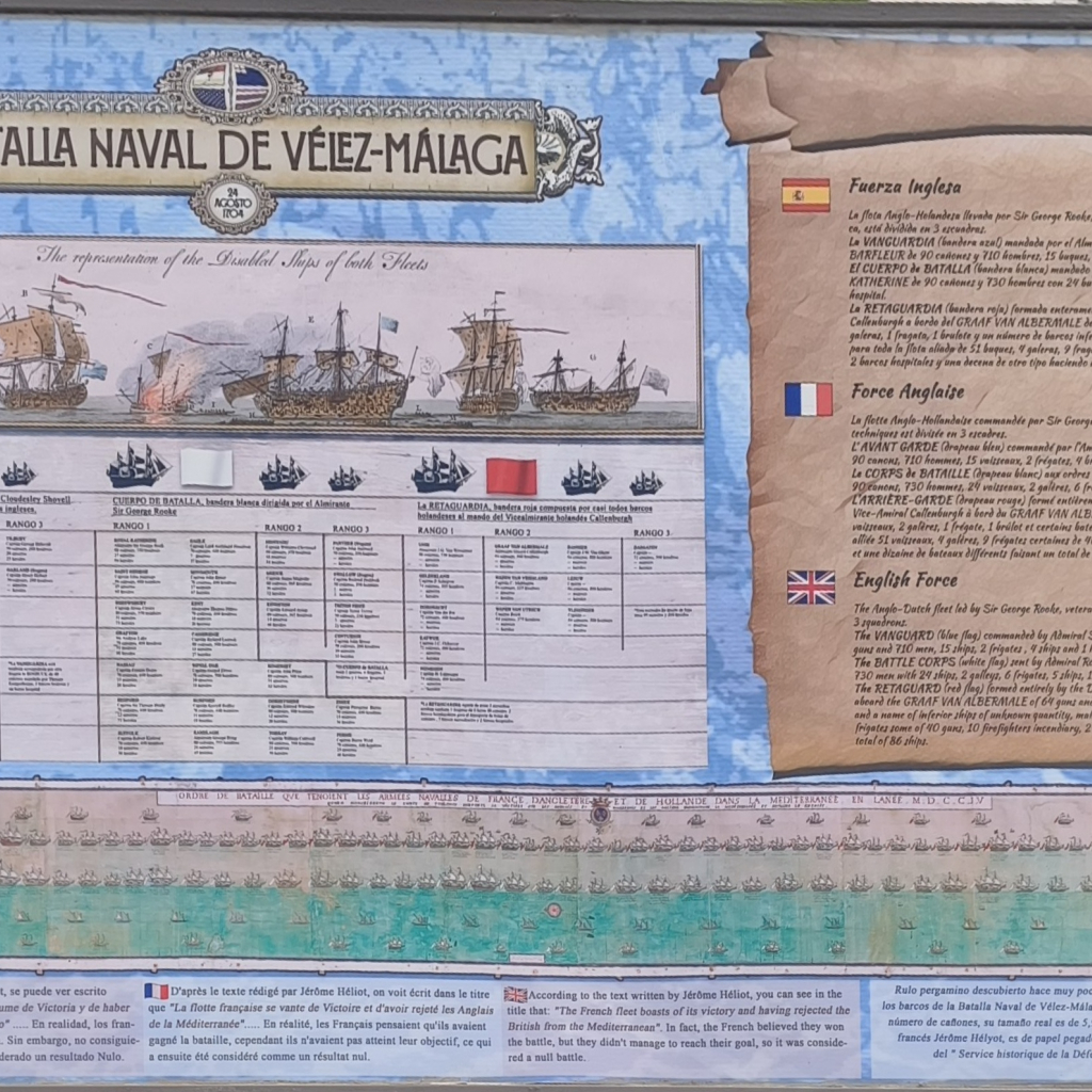 Frente a las costas de Torre del Mar se libró en agosto de 1704 la Batalla Naval de Vélez-Málaga, el mayor combate máritimo de la Guerra de Sucesión Española, donde se enfrentaron las armadas de España, Francia, Inglaterra y Holanda. Este hito histórico que marcó el inicio de la leyenda del Almirante Blas de Lezo , es el eje central de una nueva exposición permanente compuesta por 15 paneles explicativos. Con esta muestra al aire libre, sumada a la escultura, Vélez-Málaga se consolidad como un referente internacional en la divulgación de la historia naval.