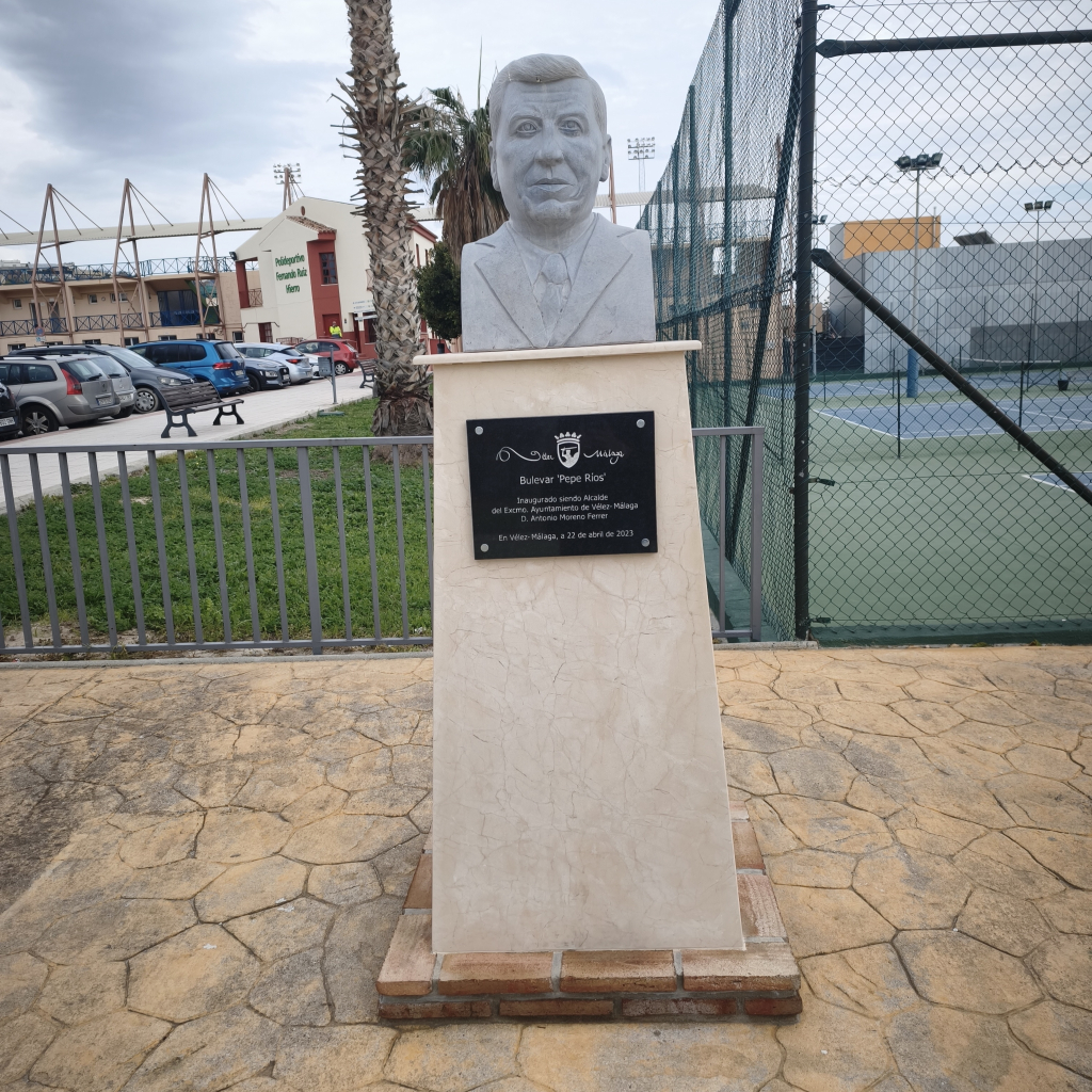 Ubicado en el Boulevar de acceso al Complejo Polideportivo Fernando Hierro, realizada por J. Casamayor en 2023, este busto no solo honra su trayectoria tećnica y profesional, sino también su calidad humana y su papel fundamental en la formación de jóvenes deportistas.