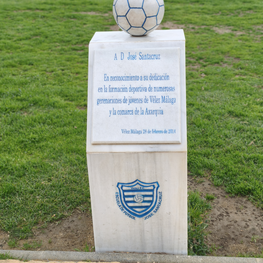 La obra rinde homenaje a la figura de J. Santacruz por su incansable dedicación a la formación deportiva.