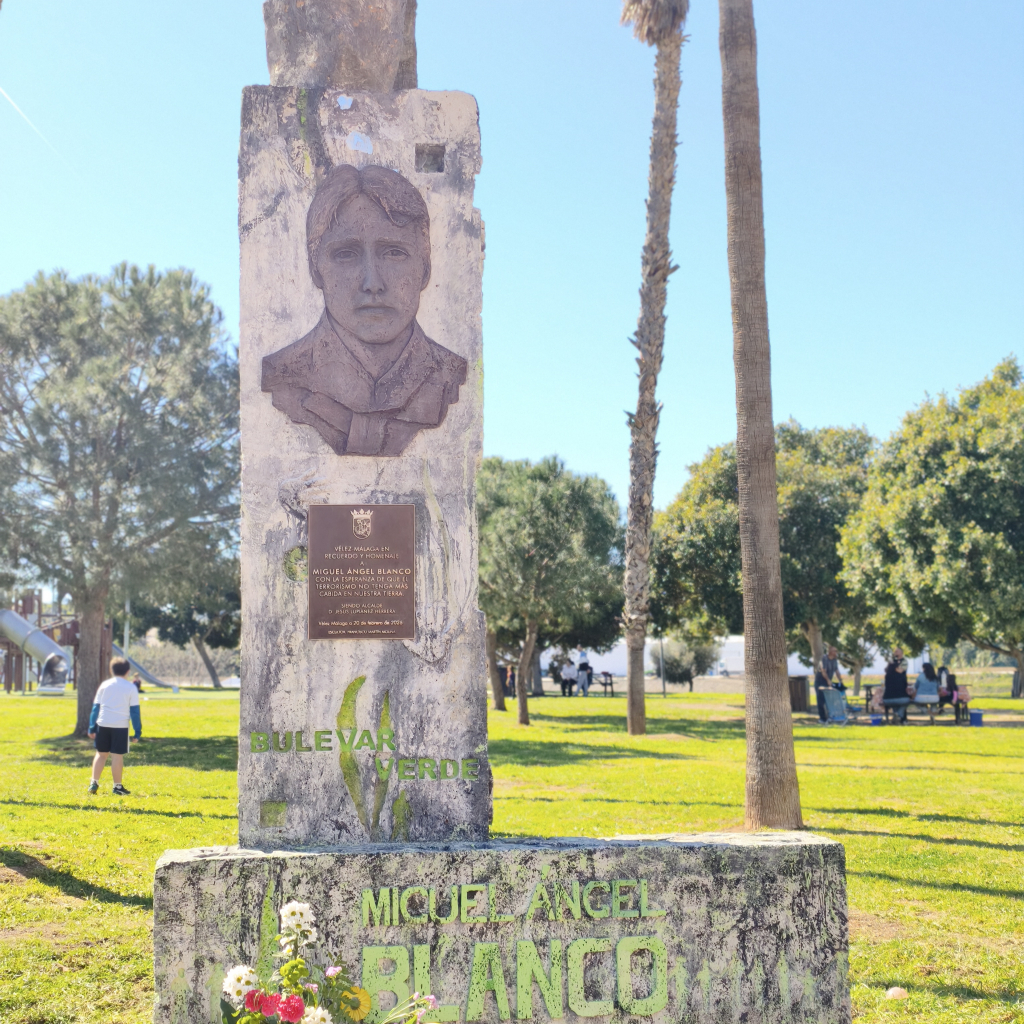 Monumento vivo a la libertad, la memoria y la democracia. La obra realizada por Francisco Martín, 2026, consiste en un monolito de hormigón y bronce que integra el busto de Miguel Ángel Blanco, concebido por el autor como una metáfora visual de la tragedia y de la resilencia social; la pieza incluye elementos que reflejan el cielo y la luna, buscando conectar la memoria del edil con el entorno natural de la Axarquía.